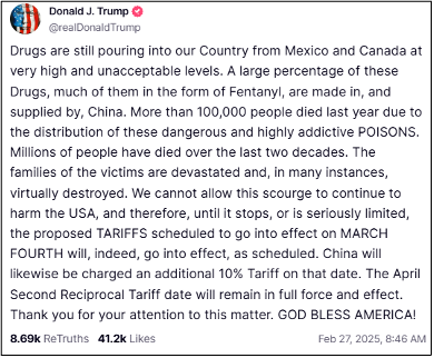 Question: “Could you be more specific on the guidance for this year with regard to tariffs? What are you factoring in for China, in particular? Is it the 10%? Or today, this morning’s 20%? And then are you instituting any remedies? And what are your thoughts about remedies like raising prices, moving stuff around? And how are you adjusting for that?