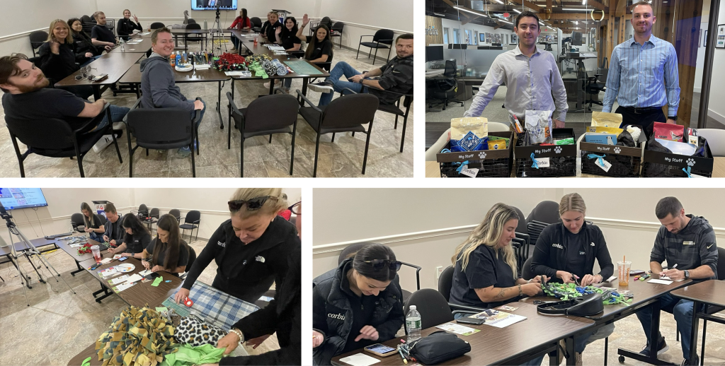 The Corbin Advisors team organized donations from across the firm to create adoption baskets for some of the many animals waiting for a new home and helped create snuffle mats – a great enrichment toy.