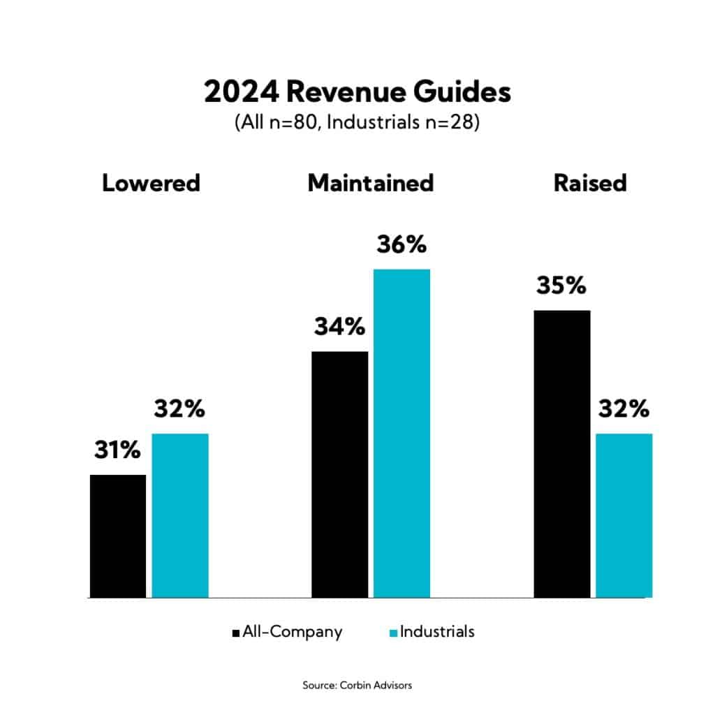 As for demand, commentary is mixed by end market, though a bright spot continues to be Aerospace and Defense, with companies reporting strength despite input supply constraints and sluggish deliveries. Continuing, destocking headwinds have also seemingly receded, in line with findings from our Q2’24 Industrial Sentiment Survey®. Further, election uncertainty is casting a pall on certain order timeframes, and many are reporting customers taking a “wait-and-see” approach until the election results come in. To that end, many are reporting increasing levels of promotional activity.